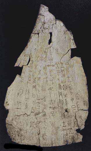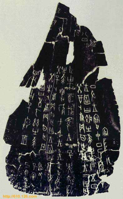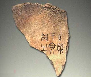 甲骨文,是商代(公元前1400)的文字。这些文字因为刻在兽骨或龟甲上,故名甲骨文。文字是以契刀刻划的,故又名"契文""契刻"。文字的内容,除极少数属於记事外,大部分是属于当时王公问卜的记载,故又称"卜辞"或"占卜文字"。此外,因甲骨文字出土的地方在河南省安阳县(原是殷代故都),所以又称为"殷墟文字"。严格地讲,只有到了甲骨文,才称得上是书法。因为甲骨文已具备了中国书法的三个基本要素:用笔,结字,章法。而此前的图画符号并不全有这三种要素。