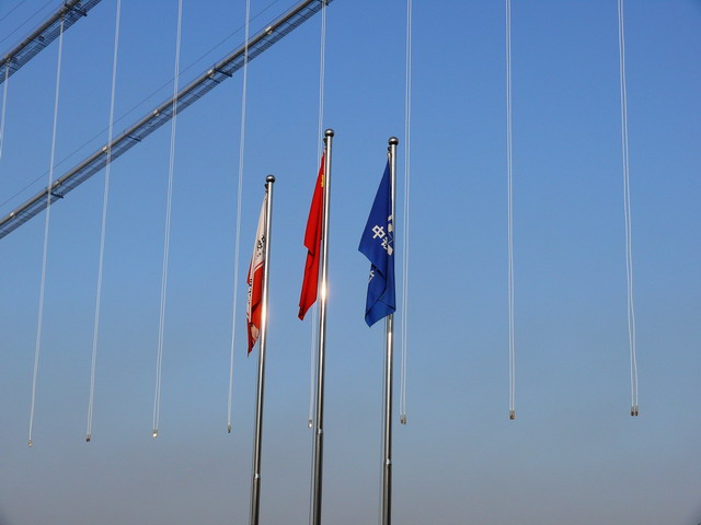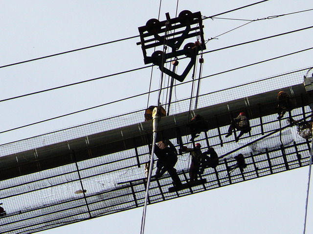 武汉在建的悬索桥。塔高160多米,两塔之间1800多米。