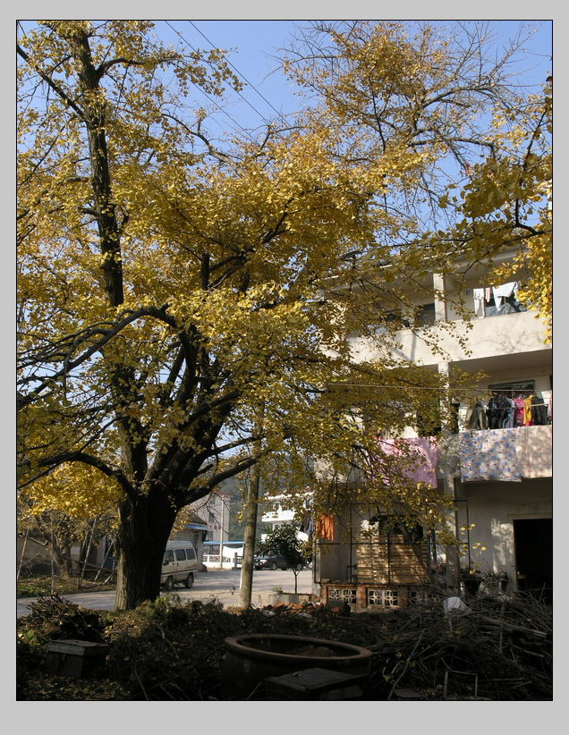 东山人多有种银杏的,苏州人叫白果。原不为观赏,但金秋时节,让人牵挂的却只是它的美了。