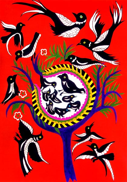 本次民间绘画展览的作者是几位在安塞土生土长的农村老大娘,她们是当地画炕围画,锅围画,墙围花,鸡蛋壳镶嵌画的高手。她们画的画造型单纯、古朴,洋溢着对生活的寄托,对生命的热爱,有着浓郁的安塞的地域特点和很强的艺术震撼力。