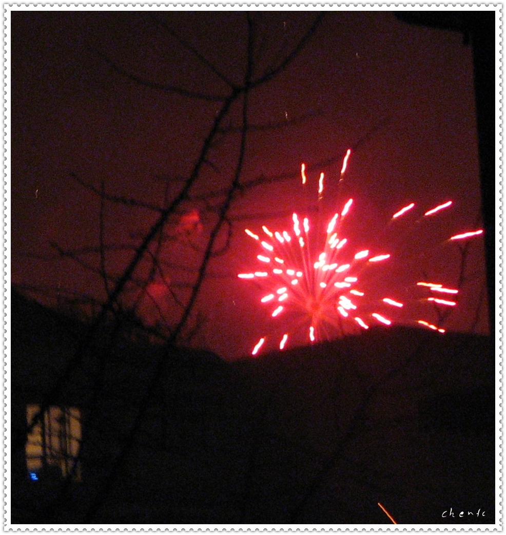 除夕夜,大家外出看放礼花,我怕挤,只好在家远远地拍了两张,算看过了。