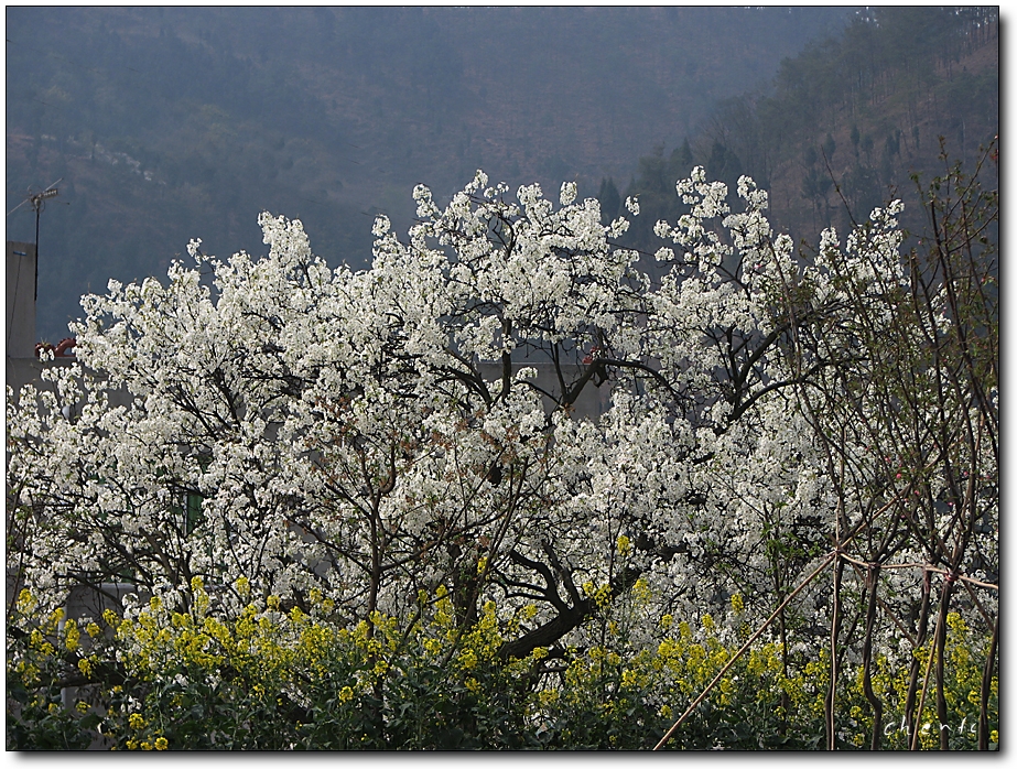 成都北面50公里的金堂县盐井乡,属浅山区,那里有的梨树已有百多年树龄。满树梨花,煞是好看。愿和色友们共享。
