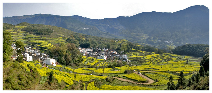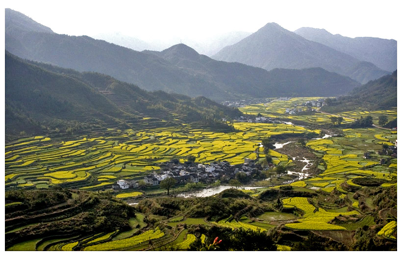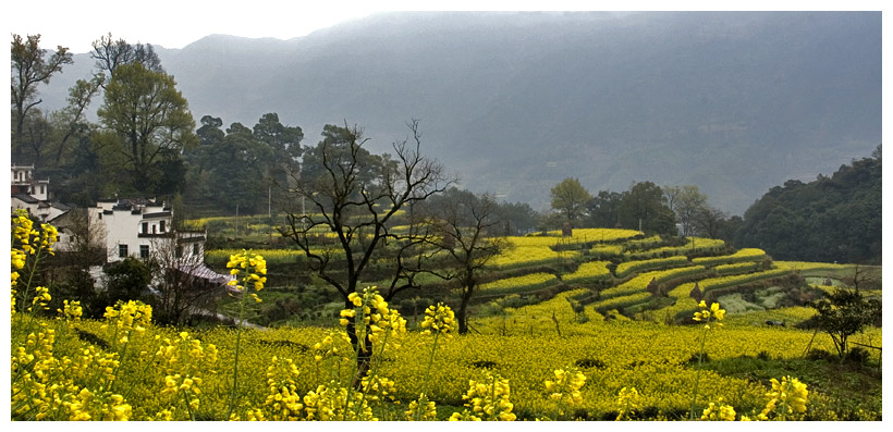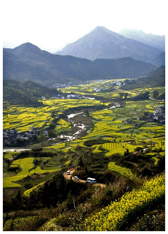 漆黑的公路上只有我一辆车在孤独地前行,内心非常期待有辆车与我并驾齐驱,哪怕是有辆车交会都是种慰藉,然而只有伸手不见五指的夜陪伴着我。行到晓起,我问一位大姐:“江岭是穿过镇子往前走吗?”她以诧异的眼光看着我:“这么晚一个人去江岭?前面的路很难走啊。”谢过她的好意,继续上路。道路越来越泥泞,也越来越狭窄,恐惧就像夜一样黑黑地笼罩着我,然而一想到王老师和勇哥他们正在开满油菜花的山乡旅店等着我,希望就像划破黑夜的一束光照亮了我,鼓励着我勇往直前。
