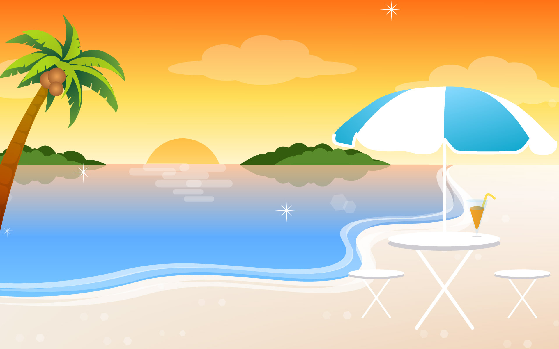 【组图】炎炎夏日,来一组清凉夏日海滩矢量宽屏壁纸 !^_^