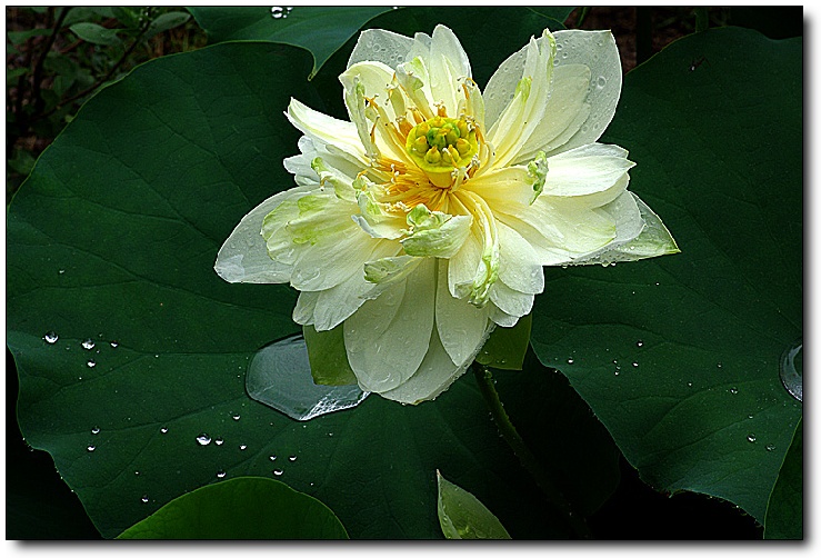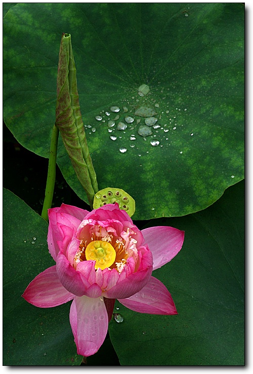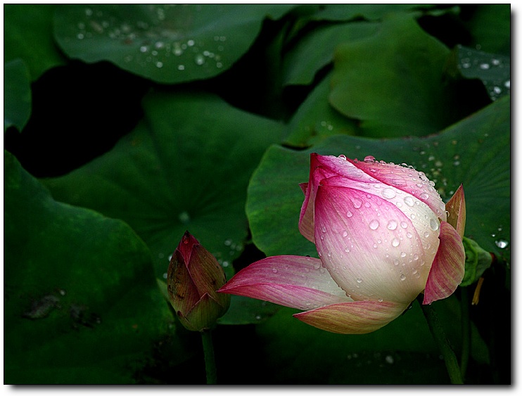 捧着相机的双手,还须抱紧伞柄,苦苦在花丛中寻觅。荷花被雨滴装扮着,更增添了几分姿色!