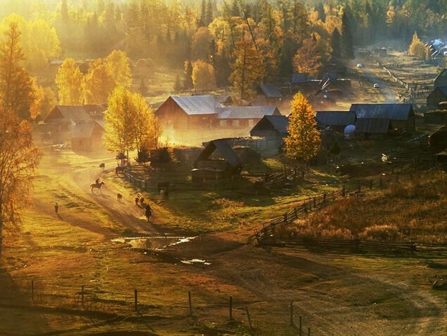 最迷人的莫过于秋林映着落日,天边酡红如醉,衬托着渐深的暮色,晚风带着清澈的凉意,随着暮色浸染,那是一种说不出的凄楚之美!