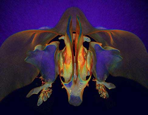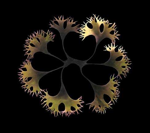 这张长有羽毛似的树枝状的爱尔兰青苔(皱波角叉菜)图片是由马里兰大学学院公园分校的植物学家和分子生态学家安德里亚·奥特森制造的。奥特森从加拿大新斯科舍省海岸获得了一些爱尔兰青苔之后,将它展开,进行干燥,然后抓拍了这张漂亮的图片,展现了此植物的复杂结构。奥特森说:“如果你从海里将皱波角叉菜捞出来的话,它会自己折叠,卷成一团。”于是,她得用海洋石头给每一个小尖端施压,干燥2天,才获得此漂亮形状。