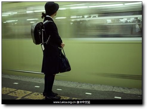 静结合:女孩正在等待列车停下来,摄影师采用慢速快门+小光圈的方式展现出列车的动感,与站立的女孩的“静止”形成对比