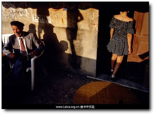 待时机:摄影师发现了这个光影俱佳的场景,只是等到一个女子起身走向侧门时才按下快门,这也是Harry CartierBresson的惯用拍摄手法