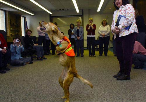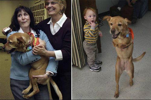 这只用两条腿走路的狗名叫Faith(信念),出生于2002年圣诞节的前夕。 它出生时共有三条腿--两条健全的后腿和一条开始萎缩的前肢(前肢后来用手术除掉)。出生不久的Faith并不能正常走动而只能躺在地上用两爪推动身体,甚至连它的狗妈妈也因为觉得它是弱者而尝试要杀死它。...