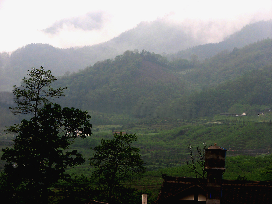 从村口可看到龙门山脉
