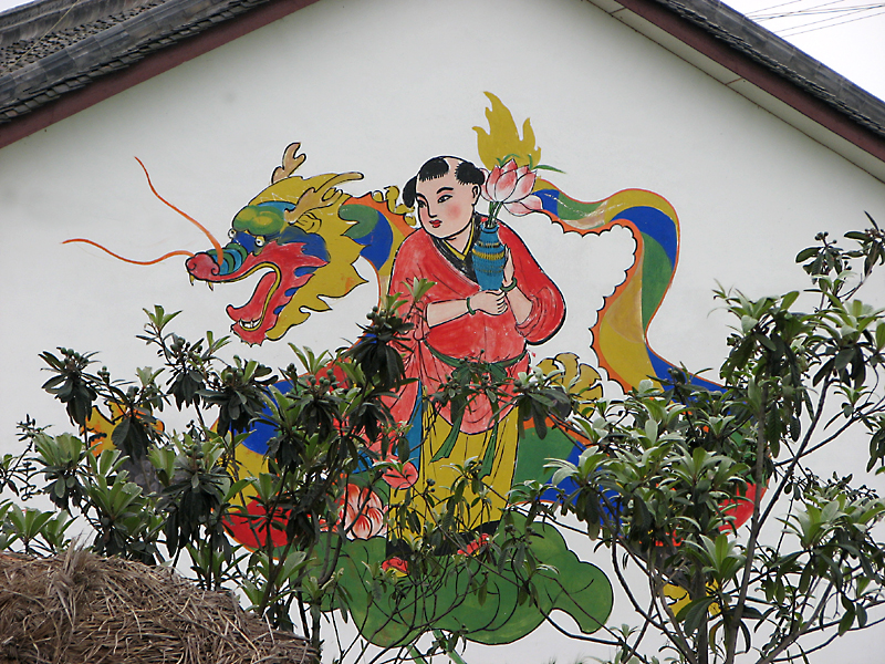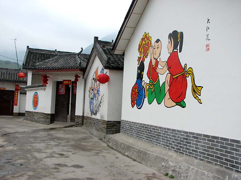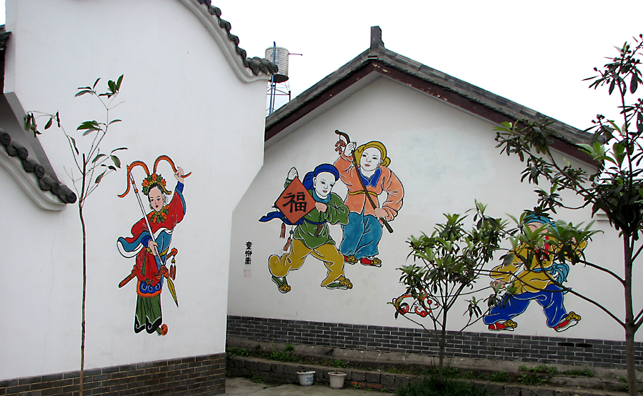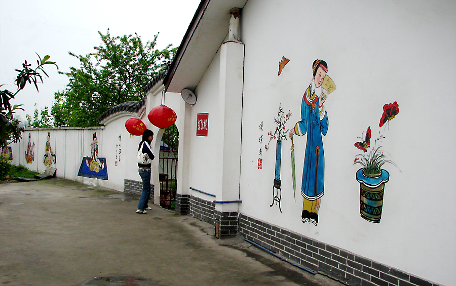 四川绵竹遵道镇棚花村,地处龙门山地震断裂带边缘,是著名的年画之乡,村内家家户户院墙上都画着年画,而且内容都不一样。这次受到地震破坏。我一年前曾去那里拍过些照片,现选部分贴上。