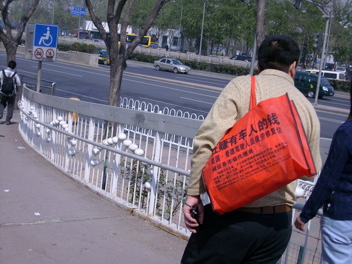《拯救中国河流》 拍摄地点:北四环某路公交车上。去过2005迷笛音乐节的朋友也许知道这个T恤的来头。2005迷笛音乐节的主题为“拯救中国河流”。