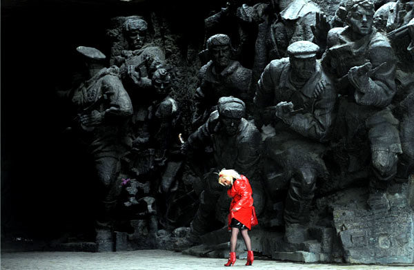 5月8日,二战胜利纪念日前一天,乌克兰基辅,一个女孩在走过二战纪念碑时,拉紧了自己的外衣。 (图片来源:法新社)