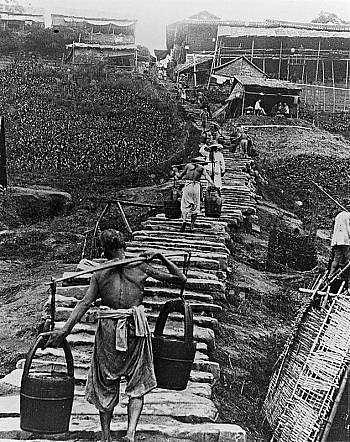 城市的挑水人。在十九世纪末,欧洲的城市已经有了自来水。