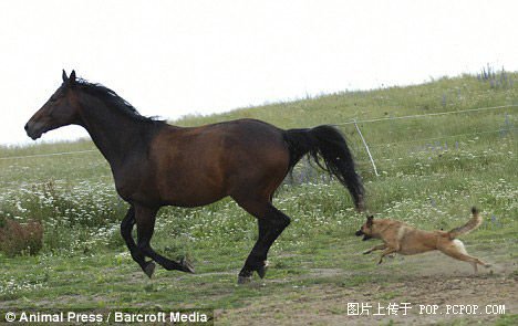 温顺马匹竟对牧羊犬下"毒嘴"(图)