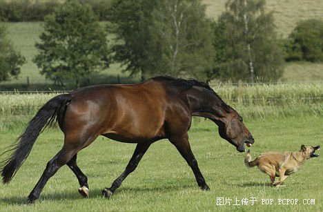 回复:温顺马匹竟对牧羊犬下"毒嘴"(图)