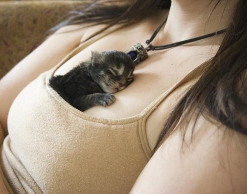 美女胸前的猫