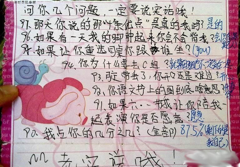 回复: 雷死人不偿命:请看六年级小学生的情书