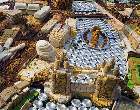1、据国外媒体报道,如果电影《查理和巧克力工厂》的主角威利旺卡的糖果屋是真实的,那可是一样梦幻的世界:有太妃糖建造的摩天大楼、巧克力河流和脆饼与生奶油打造的城市。虽然生活在可食用世界里只是一个梦想,但以下用食物打造的十大秀色可餐的建筑别有一番趣味。1、可吃的伦敦食物艺术家和业余厨师打造了这一可吃的伦敦街景图,使用的材料有比萨、鱼、三明治、椒盐卷饼、汽水罐头、面包棒和橄榄。伦敦的大理石拱门是用椰肉和欧亚甘草打造的,而不列颠博物馆则是用更传统的姜饼塑造的。