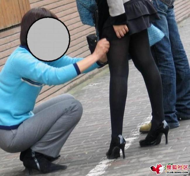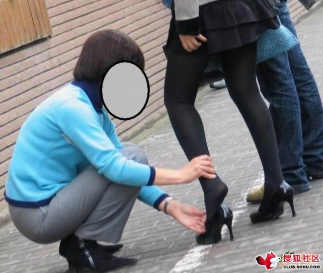 脑残女当街要亲生母亲帮自己整理丝wa(组图)