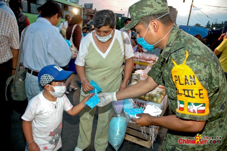 墨西哥促销者在举行促销活动时还戴上口罩。