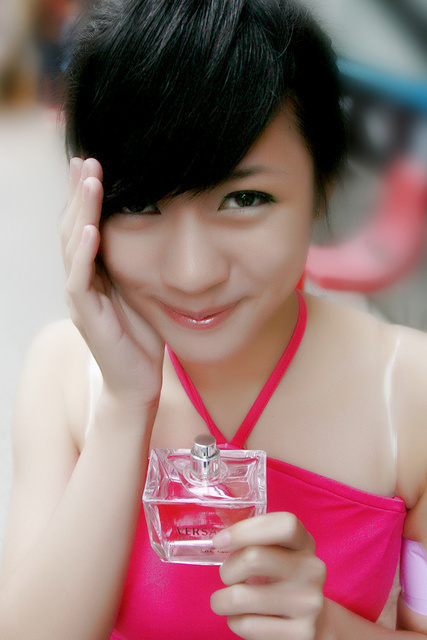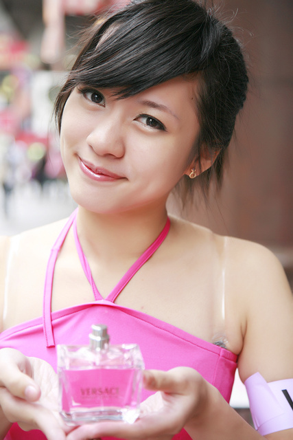 店旁推销香水的女孩