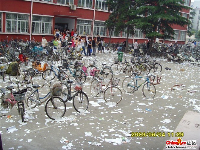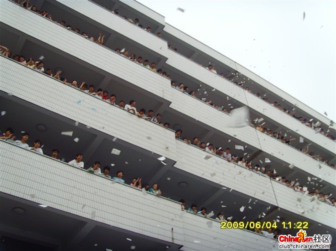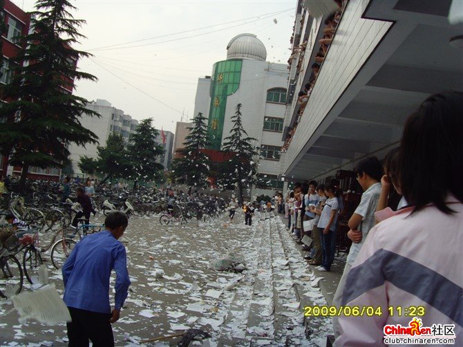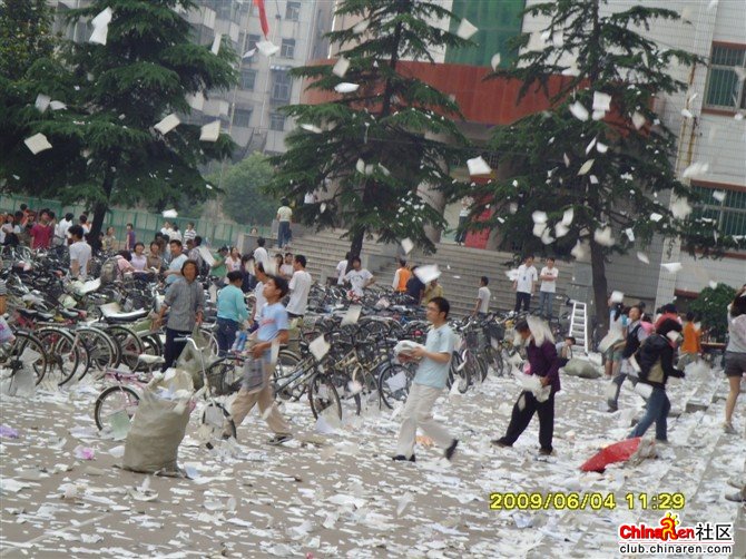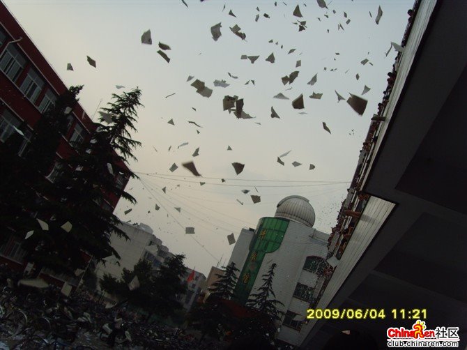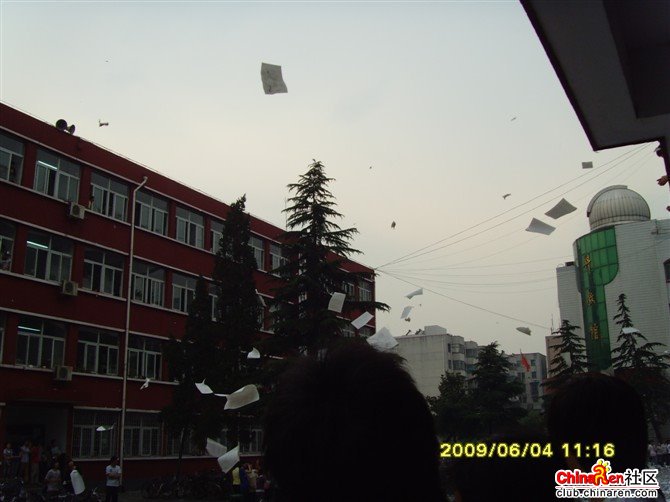 马上就要高考了,昨天上午我们学校高三开了誓师大会,然后高三的学生就开始扔卷子,扔书,一开始撕得很碎,后来整张整张的扔,再后来整捆整捆的扔,非常壮观,算是对三年压抑的一种解脱吧。