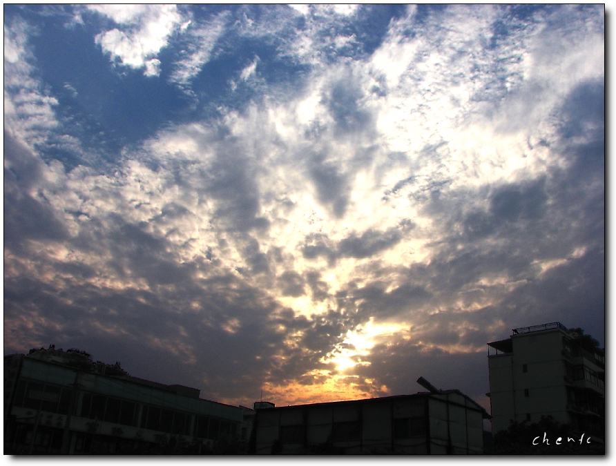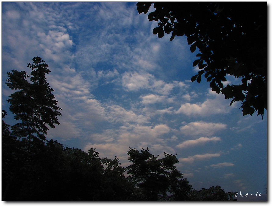 成都一年中很少北方那种万里兰天白云的天空,因此,我不大爱拍天空,前两天偶见兰天,我就试着拍了些,效果不咋的。还是发上来供大家拍砖吧!这张是早晨拍的。