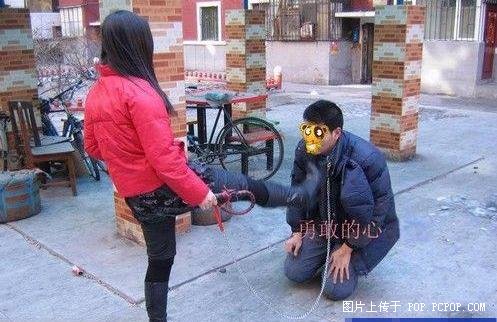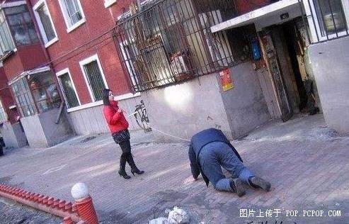 惊爆!野蛮女友把男友当狗养,街头折磨