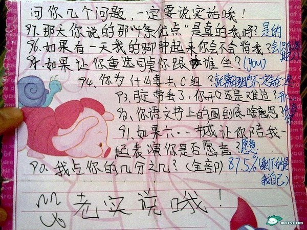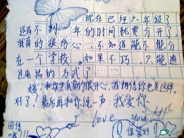 六年级小学生的“爱情”纸条~~雷死你~~看来我们老了啊~