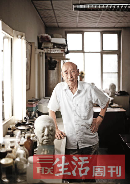 第一眼看上去,王希钟位于北影厂化装车间工作了近60年的办公室,就像一间小型的实验室,桌子上摆着各色药水、天平、量杯。王希钟解释说,这是配药水用的。地上是各种石膏模型、伟人的头像、猪八戒的肚子……应有尽有。王希钟随手拿起一个石膏人头,告诉我们,这是根据某演员的头制作的,到时候这里贴一点,那里贴一点,这个演员就可以变身为他所要塑造的领袖人物。