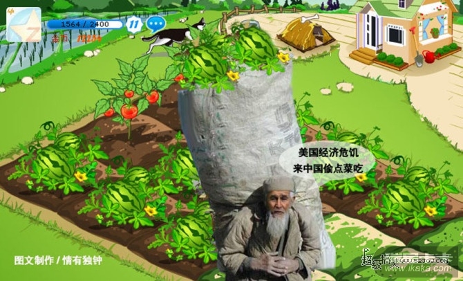时下网上种菜成风,你偷他的,他偷你的,不亦乐乎!偶尔发现一组偷菜图片很有韵味,拿来和大家共享啊!如果谁有更刺激的可以提供出来补充呀!
