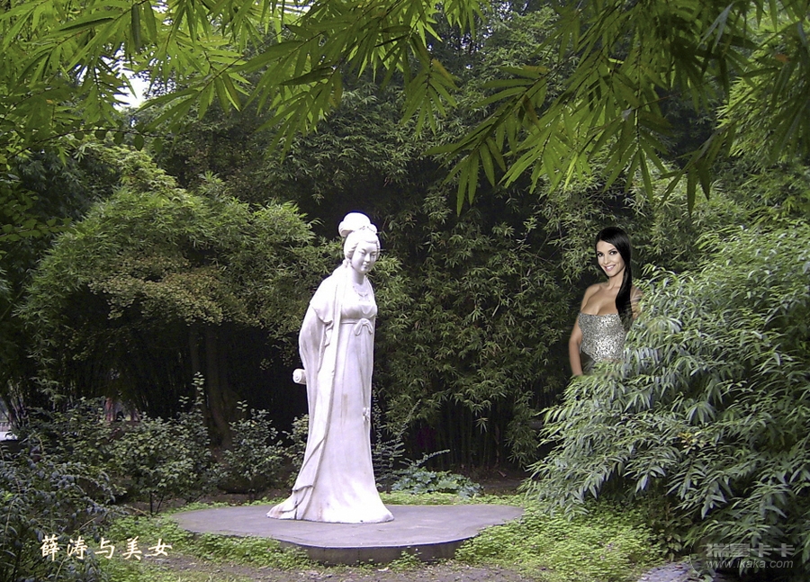 望江楼是成都的老地标,位於锦江边上,风景极好,这是合成的芬兰小姐的PS照片