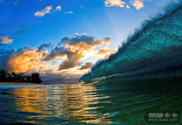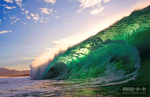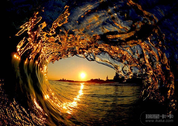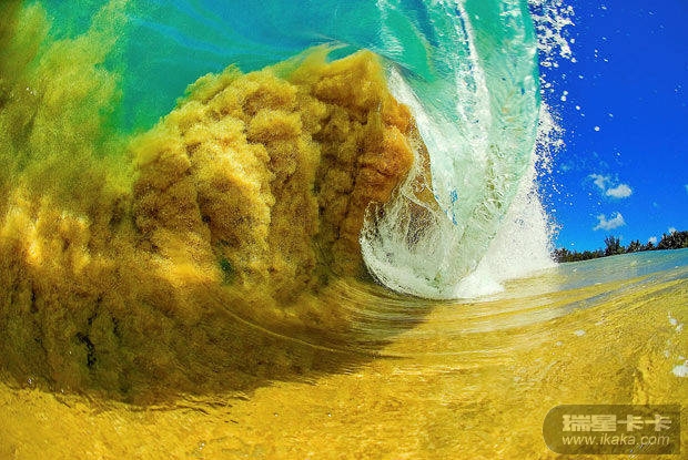 海浪中心它们展现出完美的水弧和清澈透明的“洞穴”,沙子和阳光将它们转变为五彩缤纷的万花筒。