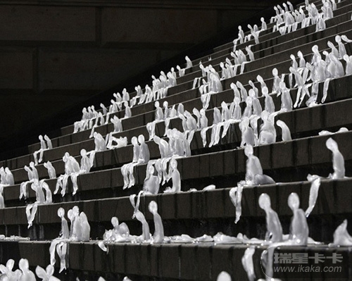 之后我才知道,其实创作者Nele Azevedo的本意不是让人感叹人生易逝,而是呼吁人们关注“全球变暖·冰雪融化”问题。自2005年开始,这位来自巴西的艺术家就在全球各地举办这个名为“Melting Men(融化的人)”的展览。其中影响比较大的一次,是2009年9月2日在柏林宪兵广场音乐厅的台阶上展出的1000个“Melting Men”。(以下图片似乎都是来自这次展览。)