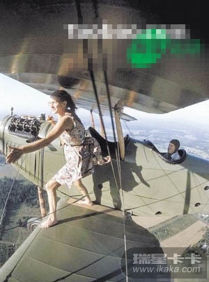 就这么站在飞机机翼上,可是什么保护措施都没啊……