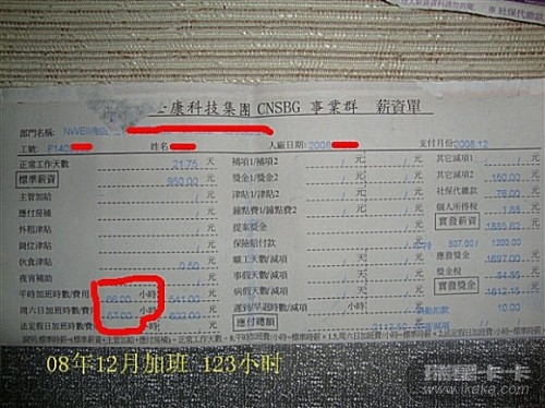 深圳市总工会也在有关报告中说,未发现富士康存在强迫加班、严重超时加班等违反劳动法规现象。不知道工会的报告是 富士康交给她们的还是她们自己去采集的。就会忽悠社会忽悠人民!我08年进富士康呆了一年多到去年底自离的,辞工基本上要一个多月才能批下来吧,还得看主管的心情了。每个月加班都上了一百多个小时的,一个月只休息2天,是调休的,也就是说安排你每月1号16号休息,如果1号是星期1-星期5其中一天就会用你星期6星期天的8个小时加班2来扣。每天工作时间是11小时+吃2顿饭1小时 在厂里要呆12小时以上,比如早上8点上班7:40就要开早会,那么我们7点就要起床 出门了。晚上 正常是8点下班 不正常9点 10点都有可能。而且8点下班了 还强迫要求义务工作10分钟搞5S(就是搞卫生)。过年后2个月就苦了,同样每天工作11小时,每月休息2天 但是加班2都被扣了,要抵年假。