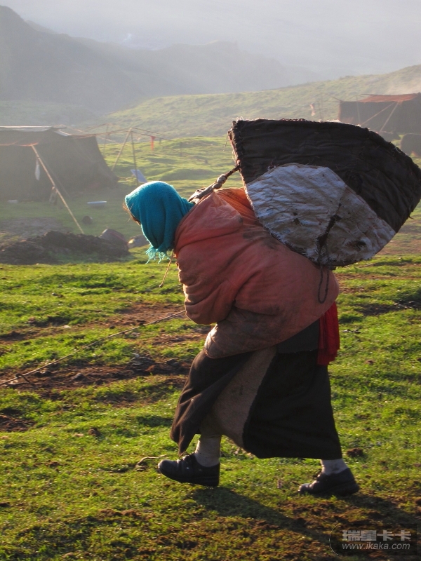 郎木寺寄住在藏民的帐篷里,大清早起来,女主人已经干了很多活了。捡牛粪。