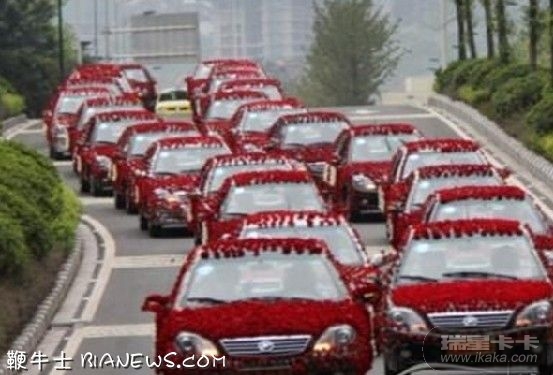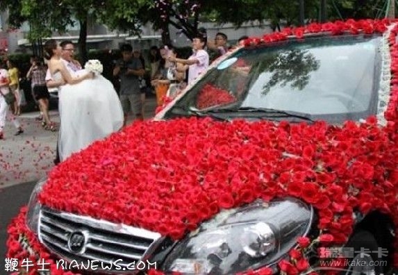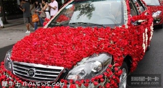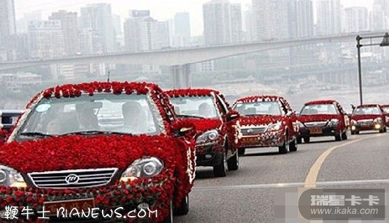 重庆惊现“玫瑰帝”10万朵玫瑰包装婚礼花车