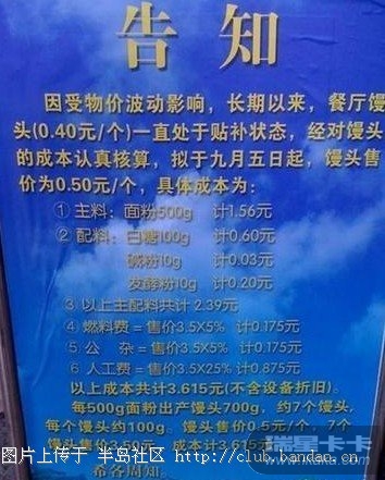 史上最尽责的学校食堂调价公告 看的哥内牛满面(图)