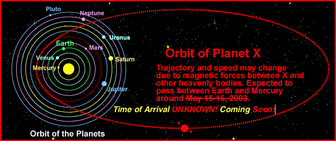 2012年12月21日,Nibiru会经过Ecliptic plane(黄道面),像太阳一样的亮红色,大约有月亮一样大小, 地震 与 海啸 等恶劣气候将更糟糕。然而最糟的情况在2013年2月14,当地球移动到太阳与Nibiru之间,极轴会转移,全球的风暴地震与海啸将达到最糟的恶化情况,海洋将掀起一到三哩高的巨大的海啸。到了2014年7月1日,Nibiru才不再影响地球。