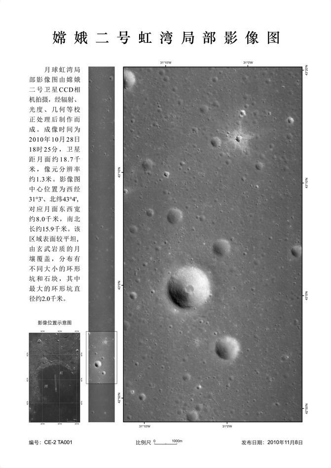 11月8日,国家国防科技工业局首次发布嫦娥二号月面虹湾局部影像图。