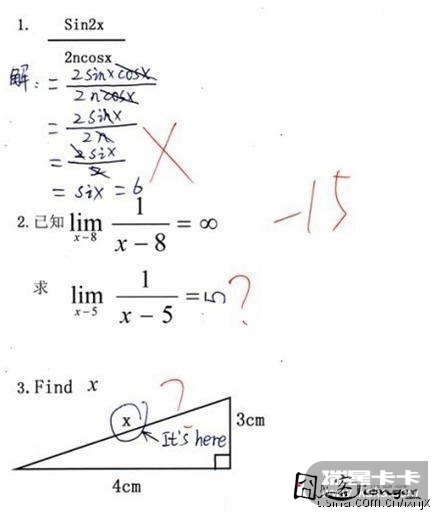 这个学生太有才了。特别是第三题,当时我就笑喷了。。。