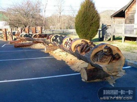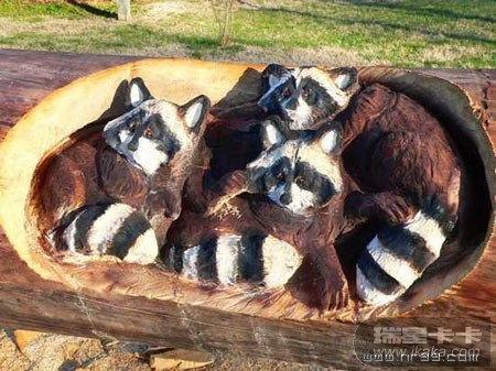这些令人惊叹的艺术作品出自 Mr. Randal D. Boni 之手, Mr. Randal D. Boni 是一个野生动物雕刻艺术家。他这些木雕是使用电锯雕刻而成,再加上铅笔和刷子的修饰,一个栩栩如生的木雕就出现了。