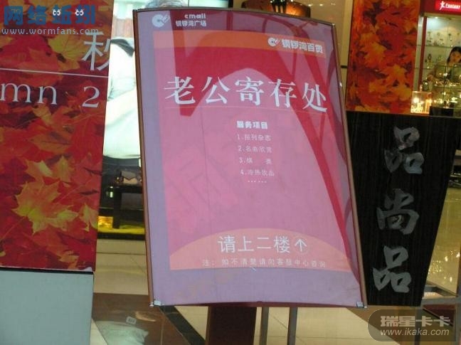 很多女人都喜欢逛街,但是自己一个人逛多没意思,所以会拉上老公或者男朋友一起去逛。曾经有一组图片被网友传到在网上,描述的就是商场里陪女人逛街的老公或男朋友们,基本个个脸上都带着委屈而又无奈的表情,那样子真叫人捧腹。终于,男人们的福音“老公寄存处”来了,据说现在好多商场,都准备了这一设施来应对这种状况。蚯蚓看到有些地方还有服务项目哦:报刊杂志、名曲欣赏、棋类、冷热饮品等。