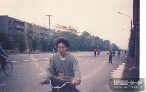 94年照片,拍摄大话西游时候,周星驰在银川骑自行照片!路人拍摄,不知道后座坐的是哪位?绝对珍藏
