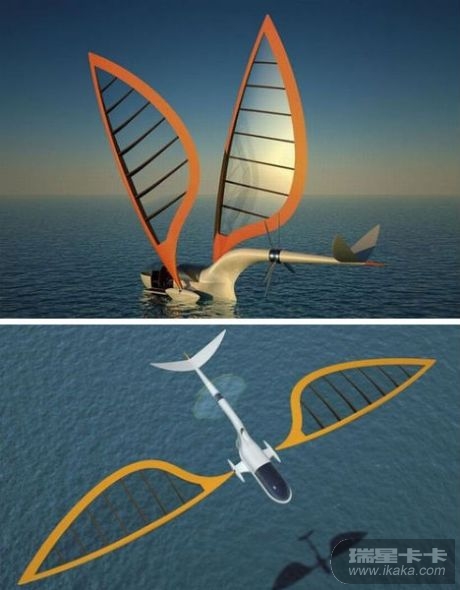 “帆船飞艇”由耶尔肯·奥克图利(Yelken Octuri)设计,就像巨大的蜻蜓一样,既能在空中滑翔飞行,又能在水面着陆。但与蜻蜓不同的是,这个飞艇概念可以向上折起机翼,利用大风航行。这一概念由一位船长委托设计,可以装载四名乘客,一面各有一块木板,能向上翻转变成浮桥。