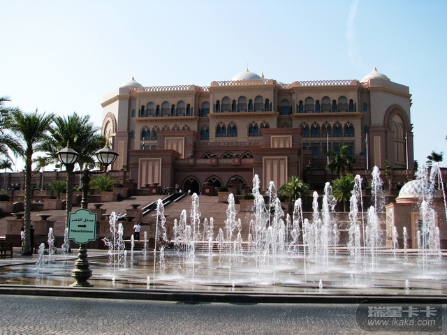 终于见到了阿布扎比著名的八星级酒店。酋长宫殿酒店位于阿布扎比海滩,北面和西面临海,是一座古典式的阿拉伯皇宫式建筑。