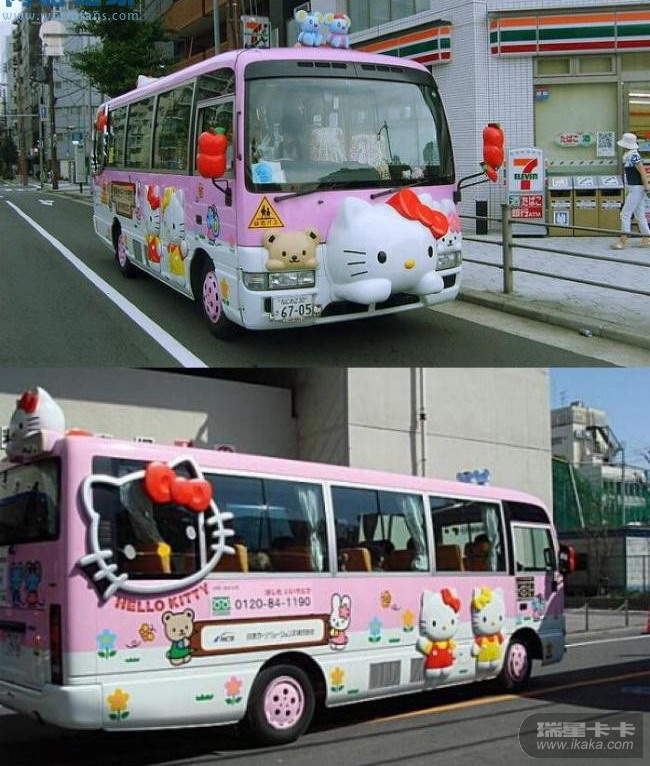 这款校车很是夸张,但是可爱至极的HELLO KITTY,孩子们一定超级喜欢